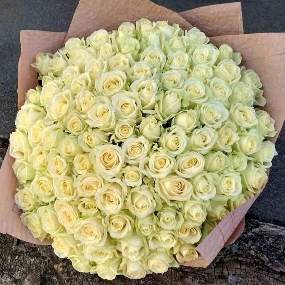Роза белая - 101 шт. оформление бумага - 1 шт.